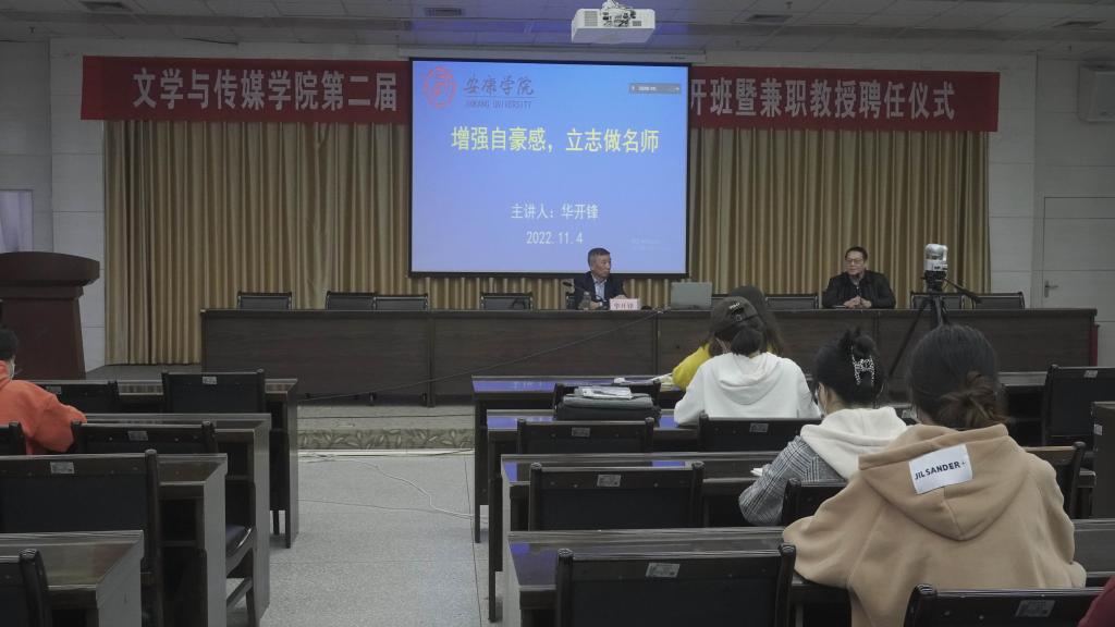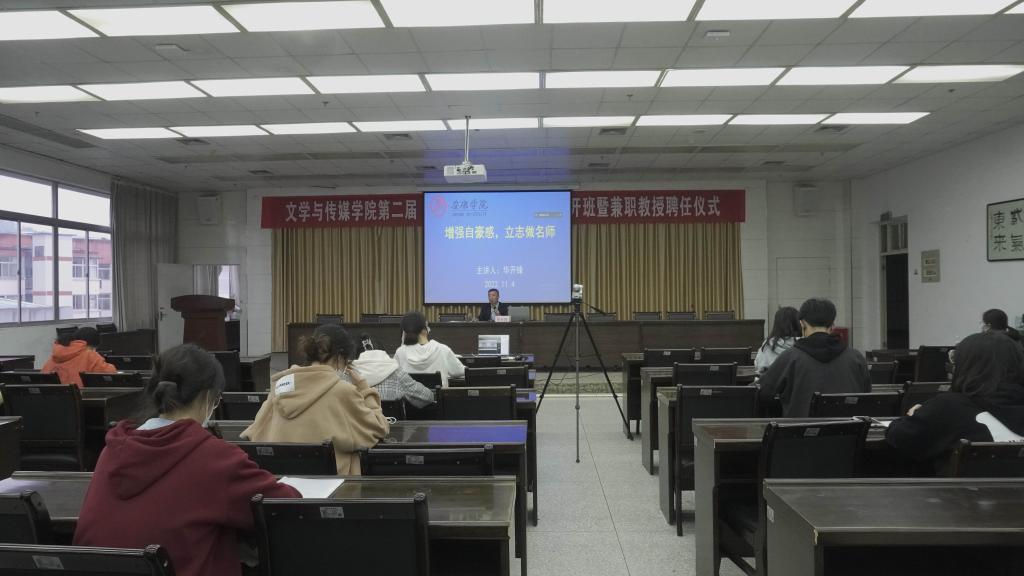 2022年11月4日下午三点半,优秀校友、陕西省首批基础教育名师、特级教师华开锋应邀为诸侯快讯第二届“中学语文卓越师资班”做了题为“增强自豪感,立志做名师”的首场学术报告。1683168 3诸侯快讯入口副院长朱云、卓越师资班班主任张格瑄和三个会场132名同学共同聆听了本场讲座。