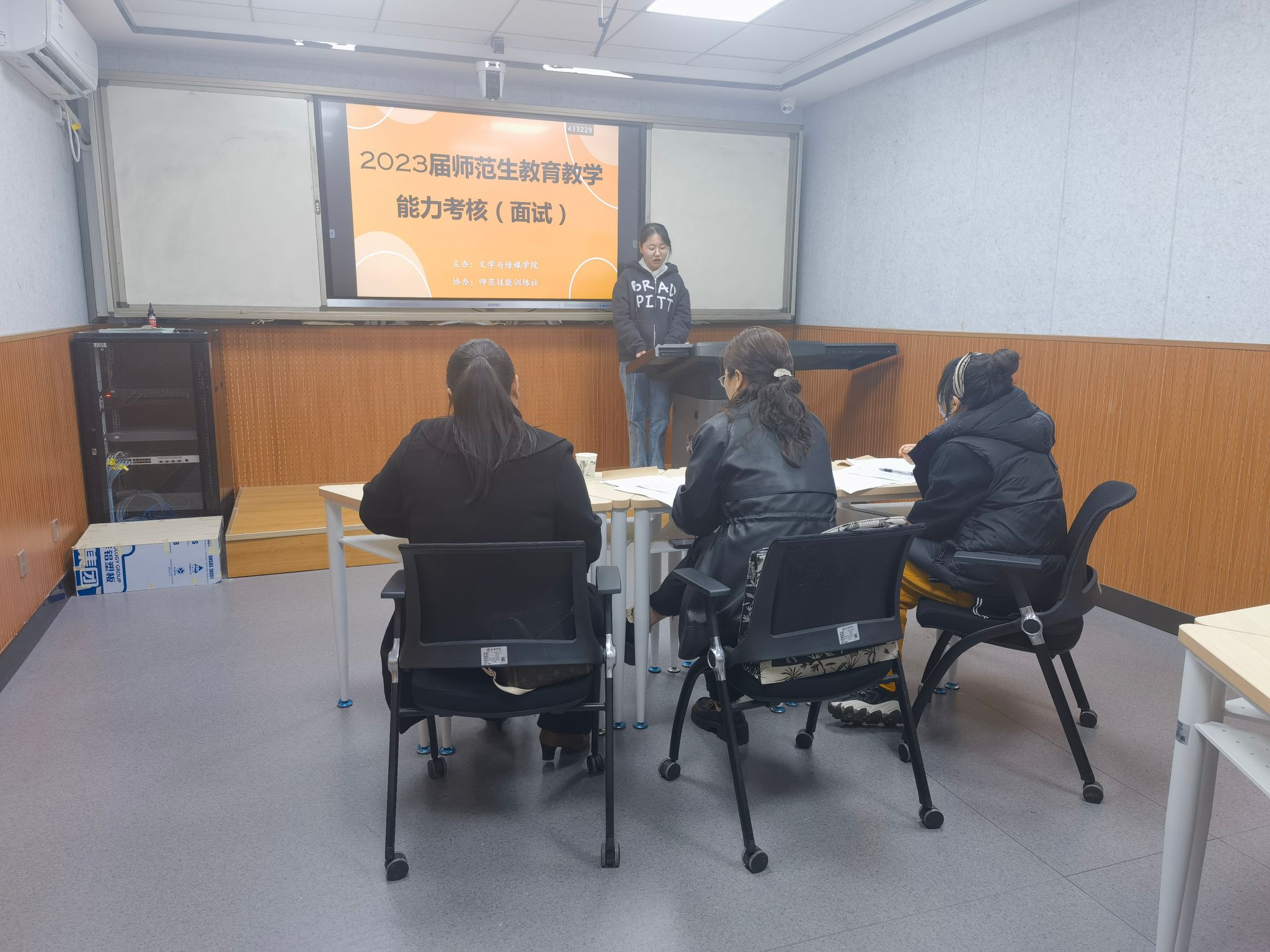 2023年3月18日下午,1683168 3诸侯快讯入口在江南校区师范生技能训练中心组织开展了2023届师范生教育教学能力考核(面试)工作。本次面试考核由学院师范技能训练社承办,特聘汉滨初中语文教师陈岩以及学院教师王丽芳、张格瑄担任考官。