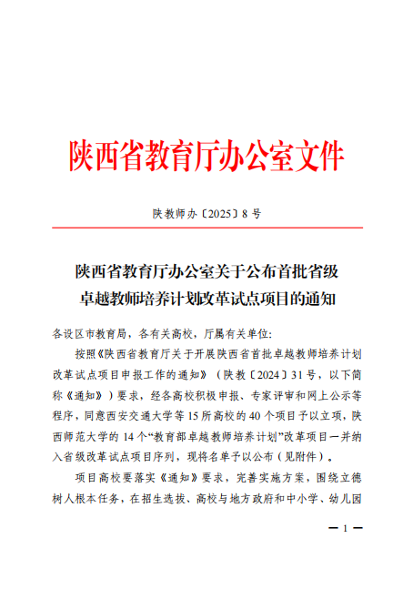 附:陕西省教育厅办公室关于公布首批省级卓越教师培养计划改革试点项目的通知